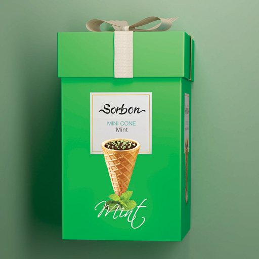 Мини-рожок хрустящий с какаосодержащей начинкой:"Аромат мяты и воздушные зерна" т.м."SORBON" 20шт*10гр