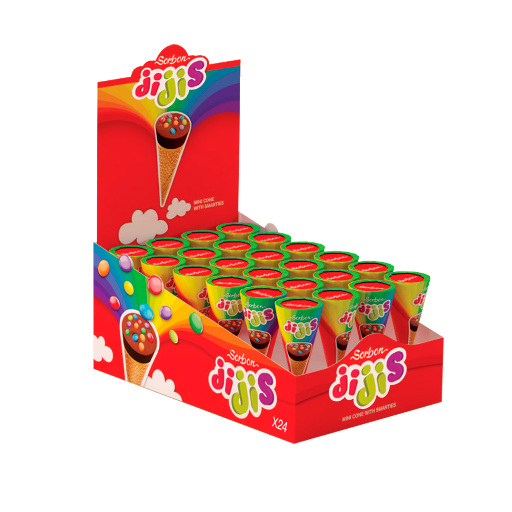 Мини-рожок хрустящий "Жижис" с начинкой: "Цветное драже и воздушные зерна", 24*20г