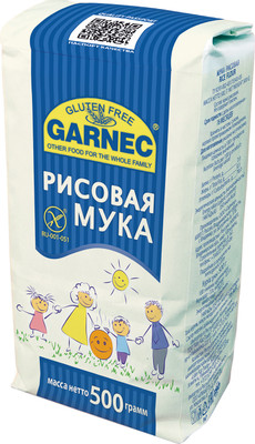 Рисовая мука без глютена. Хорошая альтернатива для замены пшеничной муки в приготовлении теста для хлеба, блинчиков, печенья и др. выпечки. Вы можете использовать рисовую безглютеновую муку в сочетании с другими видами: кукурузной мукой, из зеленой гречки, овсяной. Состав: Мука рисовая. Пищевая ценность: белки — 7 г, жиры — 0.5 г, углеводы — 78 г. Энергетическая ценность: 350 ккал. Срок годности — 16 месяцев с даты изготовления. Хранить при температуре 0 +25 С в чистом, сухом, хорошо проветриваемом помещении.