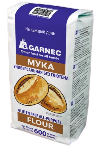 Универсальная мука для приготовления хлеба, пирожков, пельменей, тортов, кексов и других блюд без глютена. Подходит для людей, придерживающихся безглютеновой диеты (в том числе без молока и яиц), а также для вегетарианцев. Качество соответствует стандарту Ассоциации европейских обществ целиакии AOECS (Association of European Coeliac Societies). Все компоненты и готовая продукция проходят контроль на отсутствие глютена. Состав: Мука рисовая, крахмал тапиоковый, крахмал кукурузный, мука льняная, мука амарантовая, загуститель — ксантановая камедь, регулятор кислотности — лимонная кислота, разрыхлитель — гидрокарбонат натрия. Пищевая ценность: белки — 5 г, жиры — 1 г, углеводы — 83 г. Энергетическая ценность: 360 ккал. Хранить при температуре 0 +25 С в чистом, сухом, хорошо проветриваемом помещении. Срок годности 12 месяцев.
