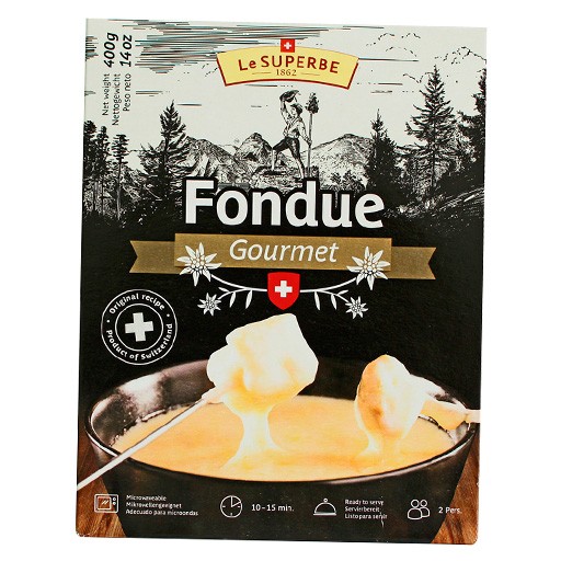 Небольшой перерыв вдали от суеты жизни, уютное общение с друзьями - фондю LeSuperbe является проверенным и популярным рецептом, который всегда удаётся. Уникально мягко таящий, изысканный и пряный фондю LeSuperbe - тот самый швейцарский фондю, оригинальный и аутентичный по вкусу, как никакой другой фондю. учшее из Швейцарии: Отборный швейцарский сыр под влиянием местных климата и почвы с её мощными травами, приготовленный по традиционному швейцарскому рецепту, превращается в несравненное сливочное национальное блюдо - это наше фондю. Настоящий кусочек Швейцарии, основанный на традиции, которая восходит к 17 веку. В те времена сыр являлся основным продуктом питания. Сочетание с виной открыло новую, насыщенную форму наслаждения. В наше время смесь фондю расплавляется в какилоне, а кусочки хлеба на длинных вилках обмакиваются в кремообразный сыр. Помимо этого, и овощи, картофель или фрукты усовершенствуются с помощью фондю до рафинированного ощущения вкуса. В дополнение подходит бокал белого вина или чай. Фондю приносит в дом зимнее волшебство и объединяет семью и друзей в бесконечном моменте наслаждения.